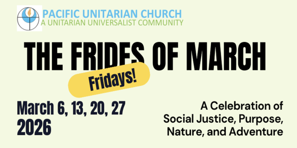 Pacific Unitarian is an inclusive liberal religious community and a Welcoming Congregation. We are committed to valuing people and encouraging their spiritual, ethical and intellectual development.