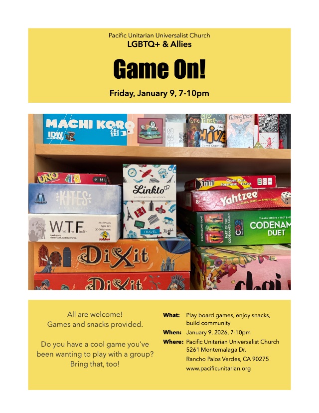 Pacific Unitarian’s Game Night, Friday, January 9, 2026 from 7 pm to 10 pm01/02/2026 in Events, Home Page, social justice
