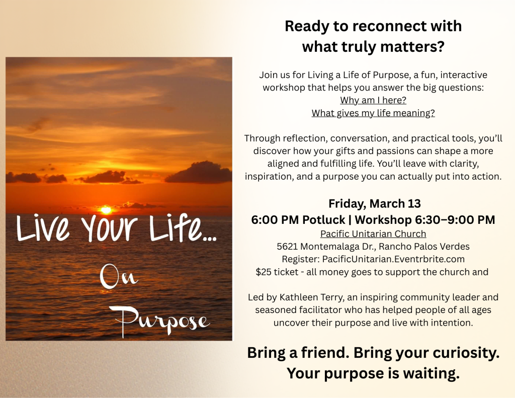 Living a Life of Purpose Workshop, Friday, March 13, 2026 at 6:3003/09/2026 in Events, Home Page Please register if you plan on attending this event. Register